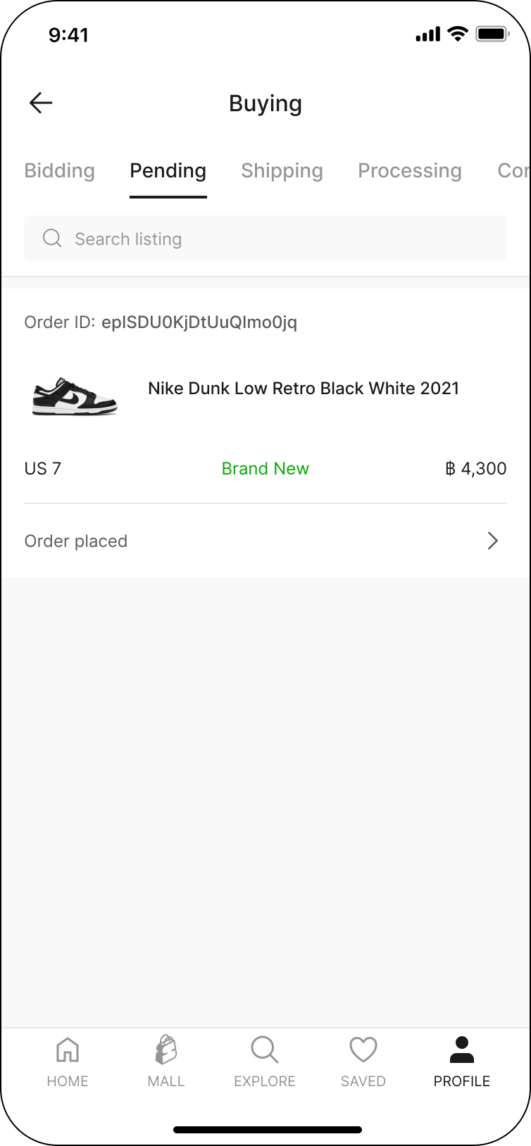 Step 1: Go to 'Buying' menu in your 'Profile'