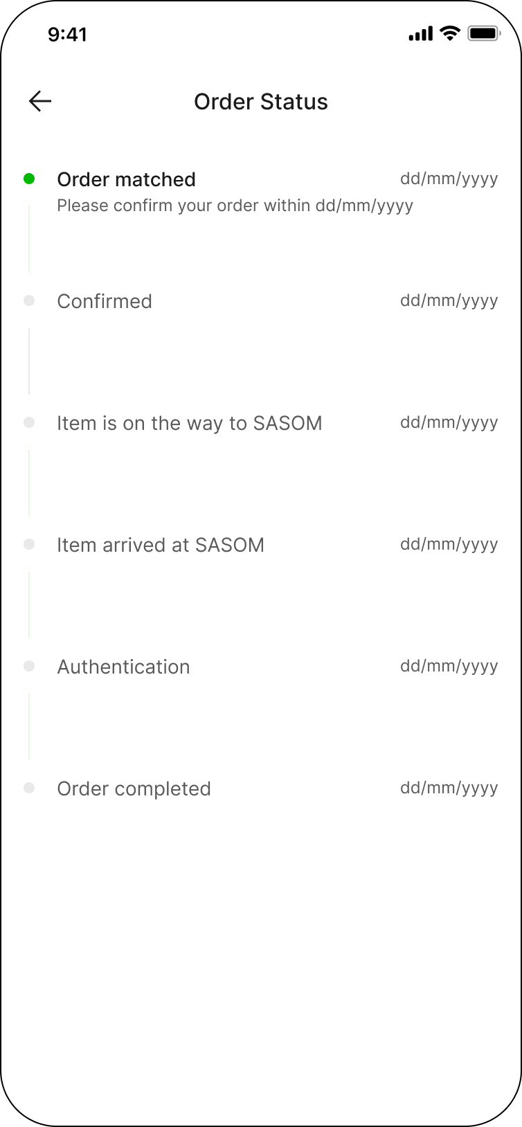 All of your orders will be categorized according to their order statuses: Pending, Confirmed, and Completed.