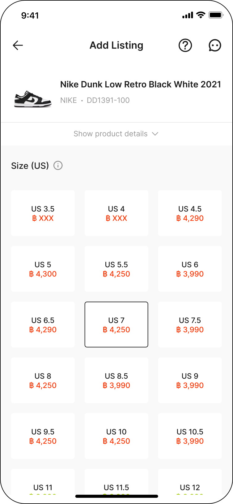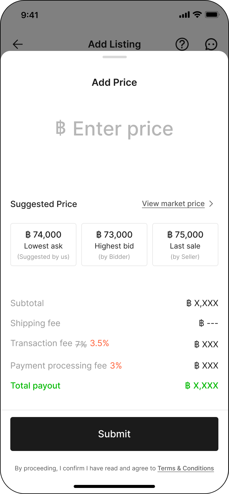 Enter your listing price. You can choose to set the price based on our suggested price or review the market price to set the price as you prefer.