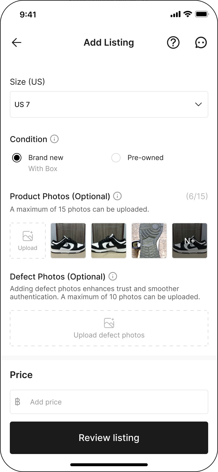 Upload photos of the product according to the selected product conditions. You can upload up to 15 photos.