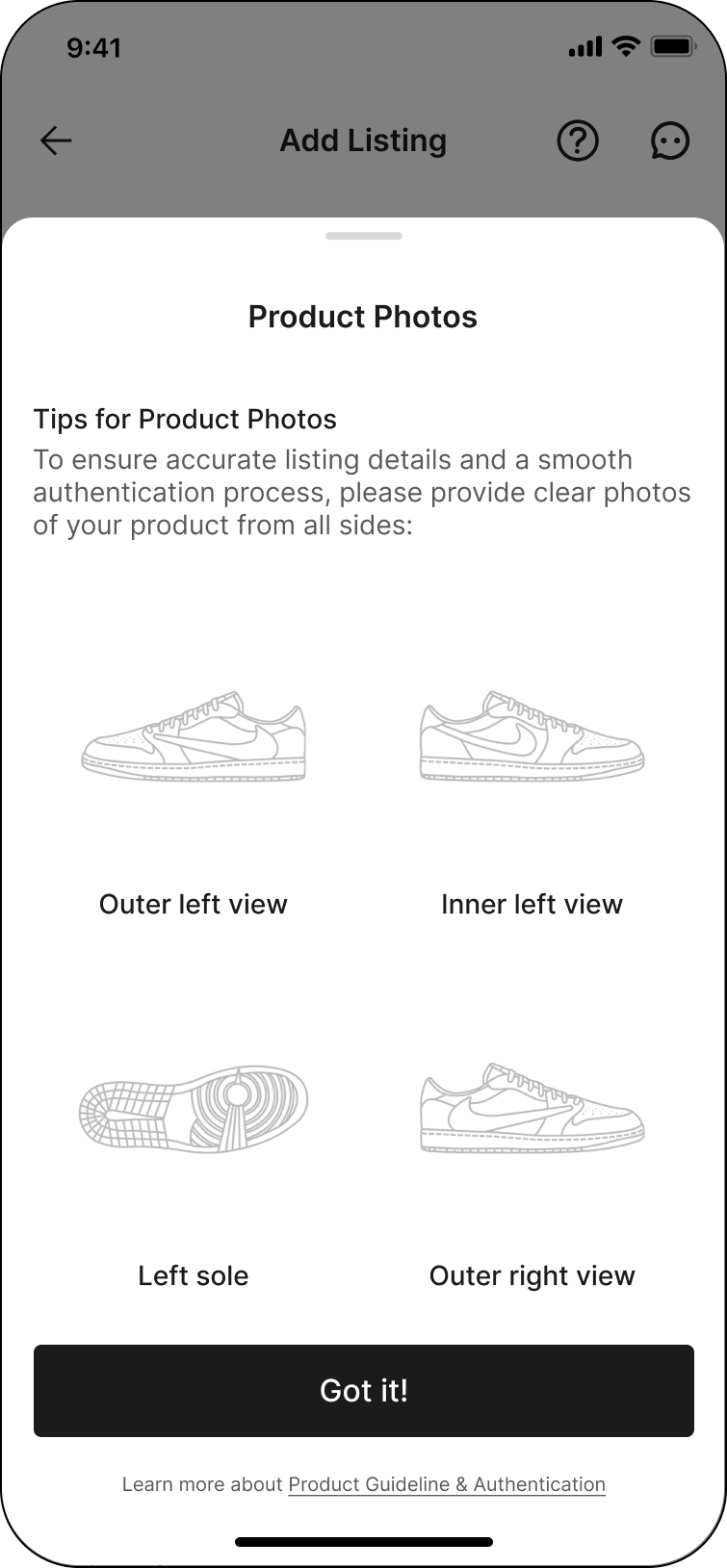 For product photos guidelines, click the 'ⓘ' icon next to the 'Product Photos' title.