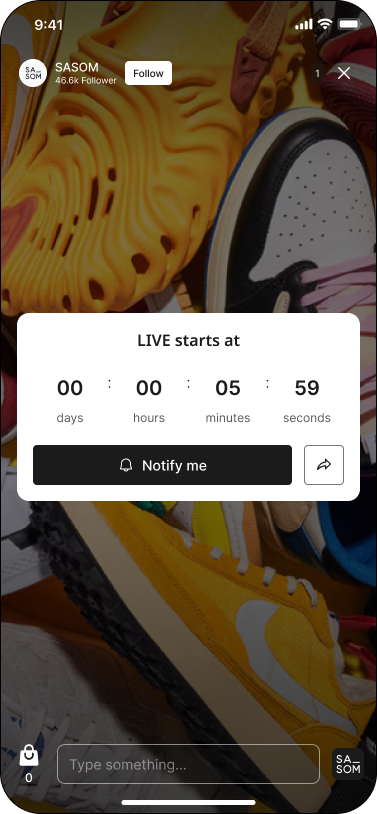 For upcoming LIVE sessions, tap 'Notify me' to receive a notification as soon as the host goes live