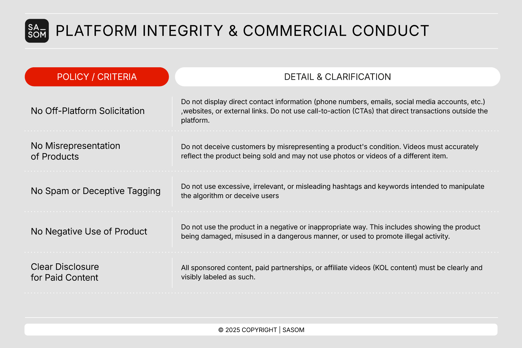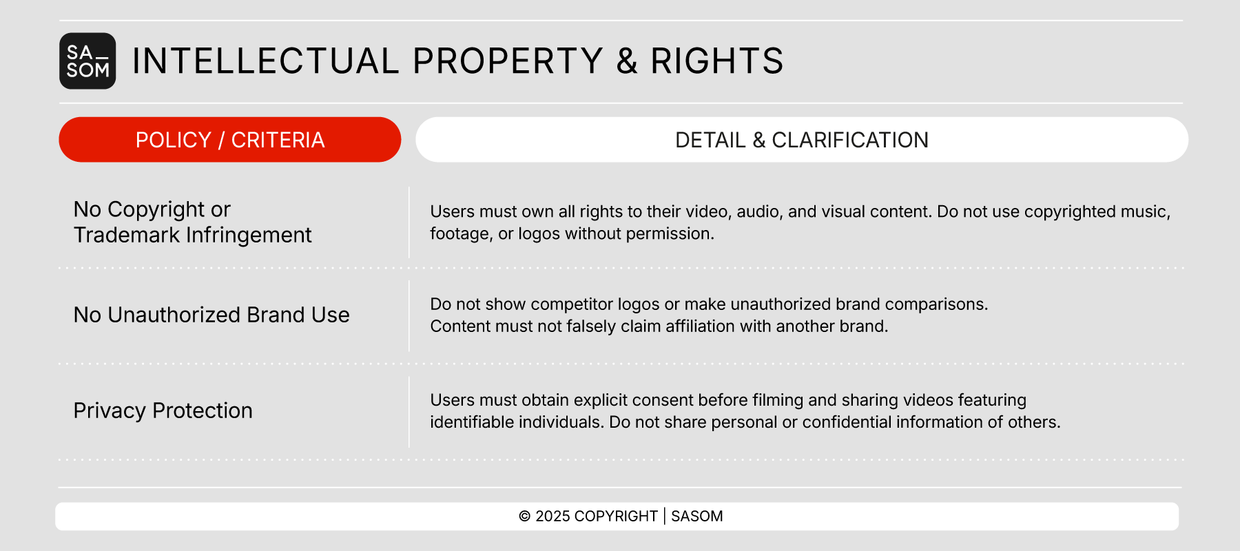 To ensure that all user-generated and seller-generated videos on SASOM are safe, authentic, compliant, and aligned with SASOM and legal standards.