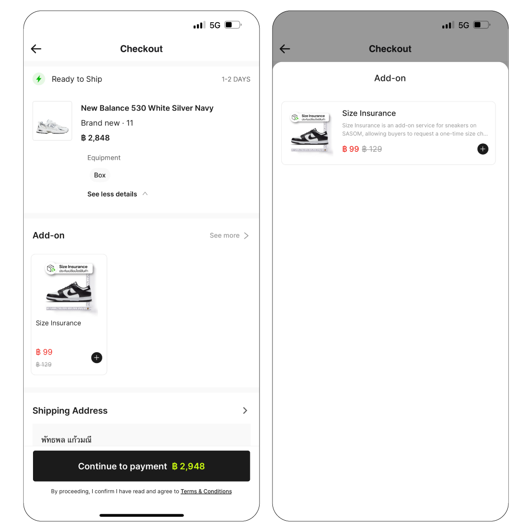 - ลูกค้าเลือกซื้อประกันไซซ์ในหน้าสรุปคำสั่งซื้อ (Checkout)